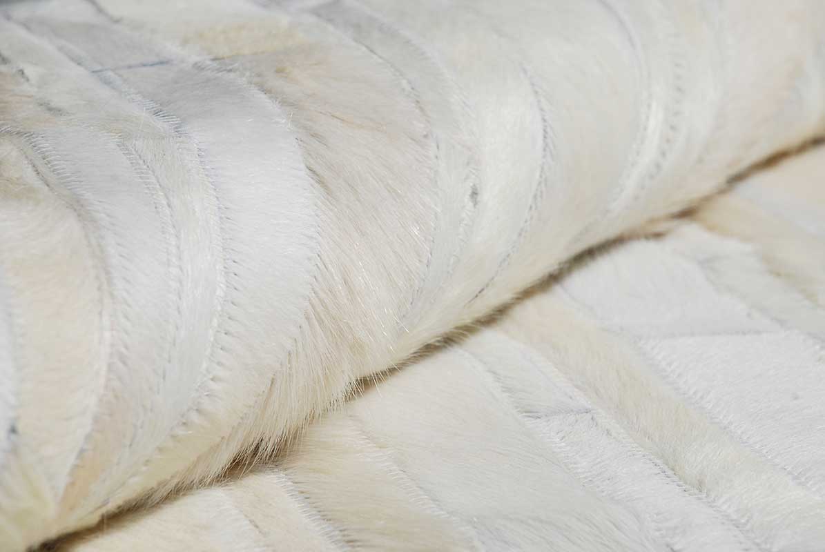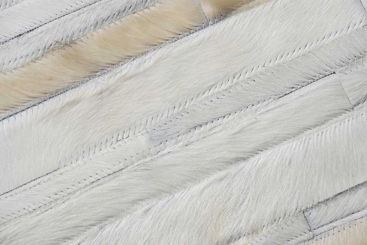 Prepárate para experimentar la verdadera definición de suavidad. Siempre una elección acertada, nuestra alfombra patchwork de cuero blanco en rayas combina sofisticación y vitalidad a la perfección.