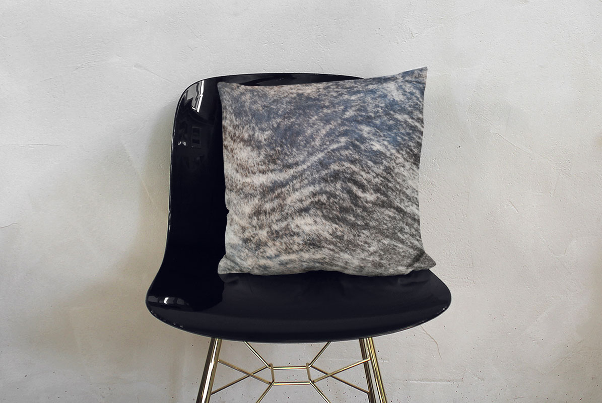 Unique natural leather throw pillow made from a single, high quality, Dark Charcoal and Vanilla Brindle Cowhide patch.