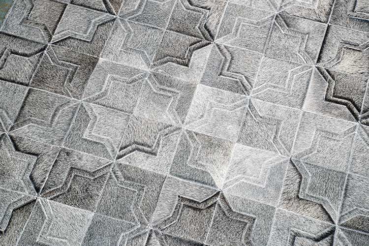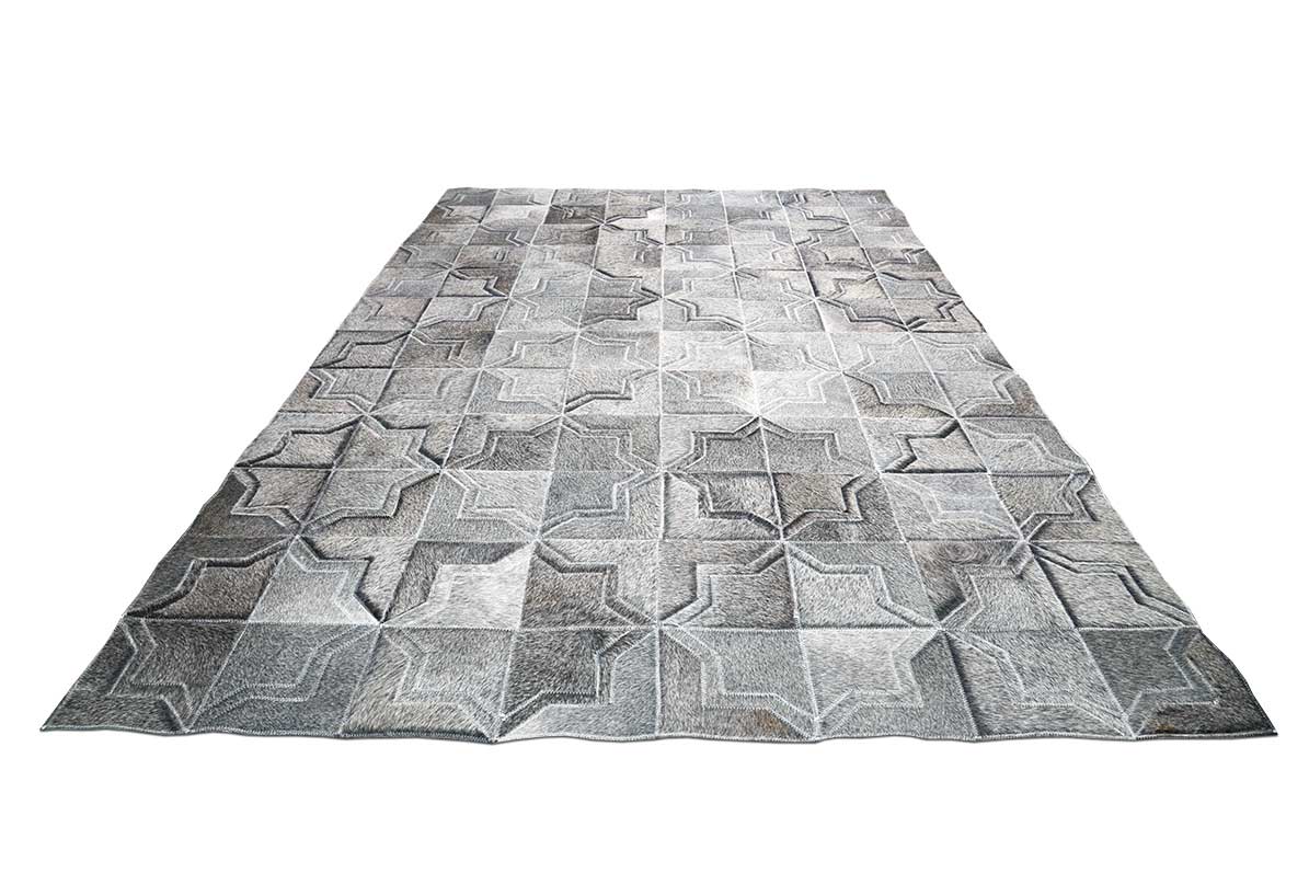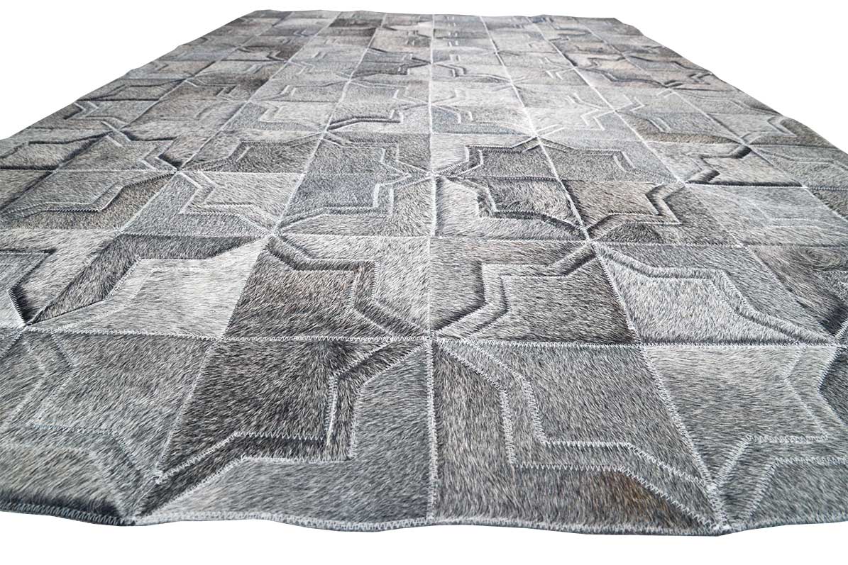 Dark Gray Moorish Star Patchwork Cowhide Rug