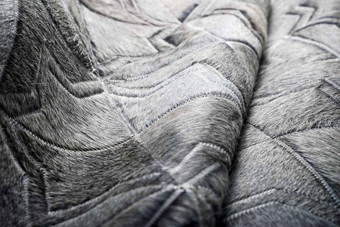 Each star and cross is cut from natural hide and fitted together by hand to create a seamless pattern.