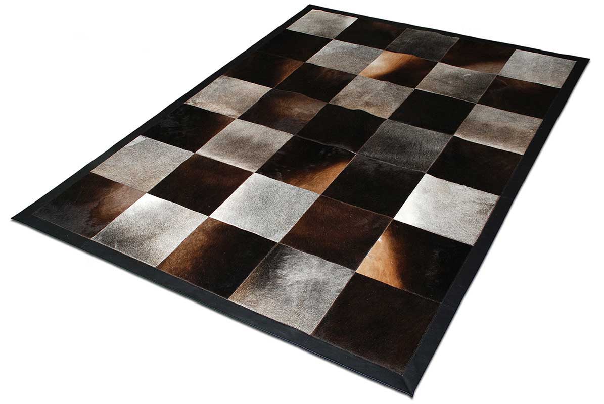 Our Patch Cowhide Rug in Gray and Chocolate Brown Squares is the definition of style! Your room will thank you.
