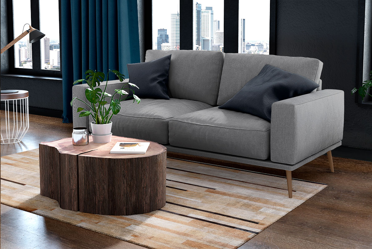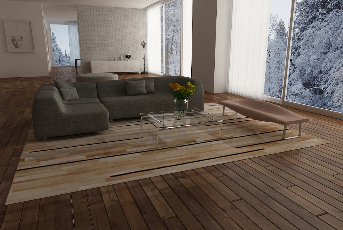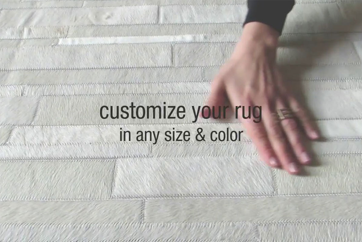 This durable patch cowhide rug keeps its natural soft suede on the back, and is finished with subtle and resistant zigzag stitching. A leather area rug that works great in high traffic areas without needing any kind of under pad.