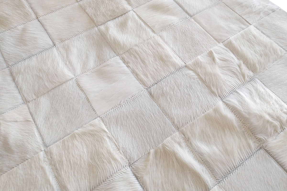 White Classic Squares Patchwork Cowhide Rug