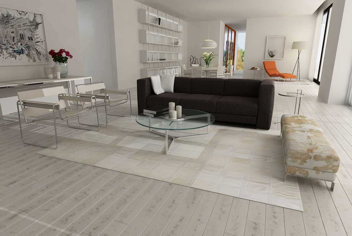 Complete your luxurious home with a modern cowhide rug in creamy white cowhide.